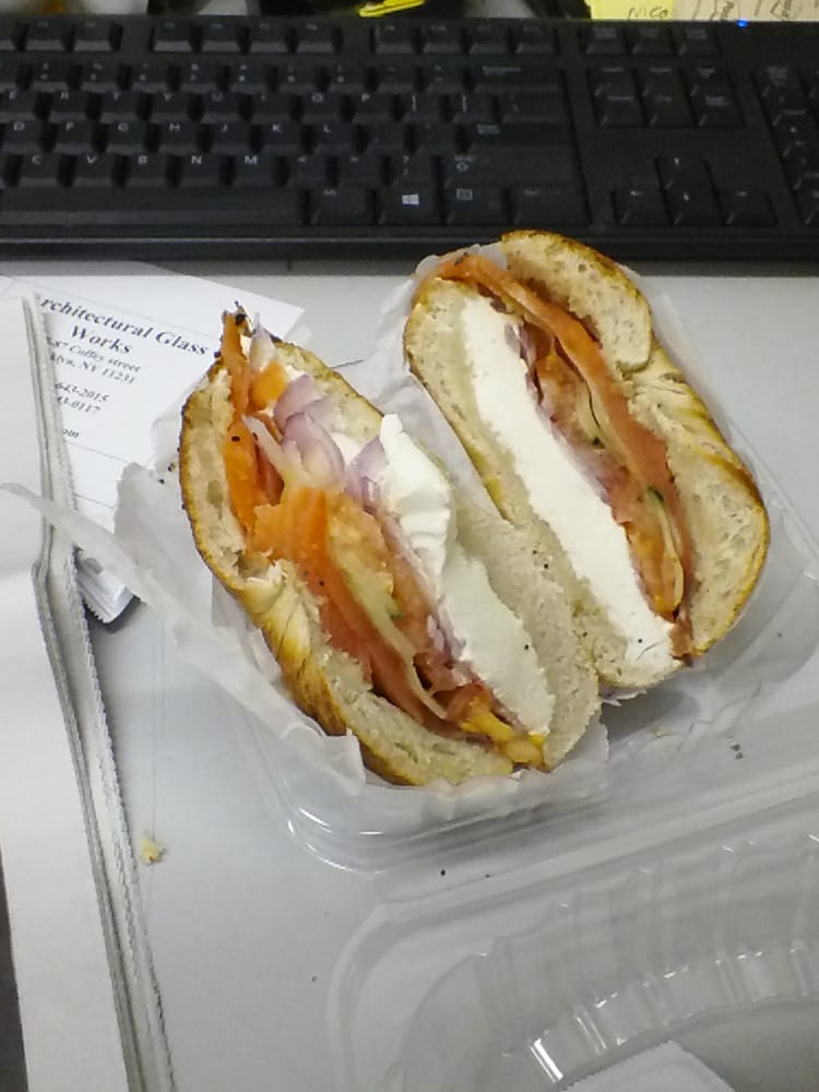 Nova, cream cheese, tomato, onions, capers and avocado.